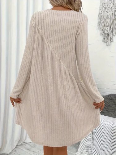 Kadın uzun kollu yuvarlak yaka asimetrik detaylı kiloş şardonlu kaşkorse elbise