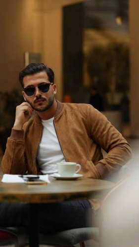 • Erkek Scuba Süet Kumaş Bomber Hırka