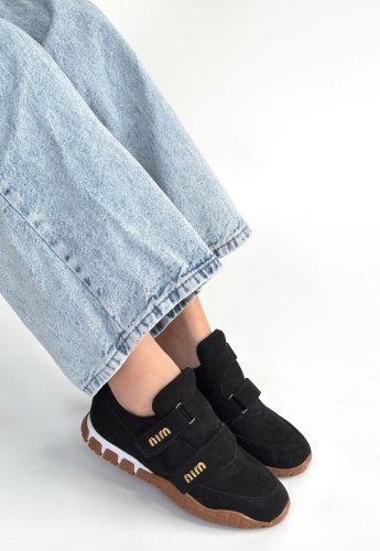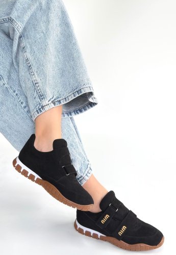 • Tunga Siyah Süet Cırt Cırtlı Spor Ayakkabı